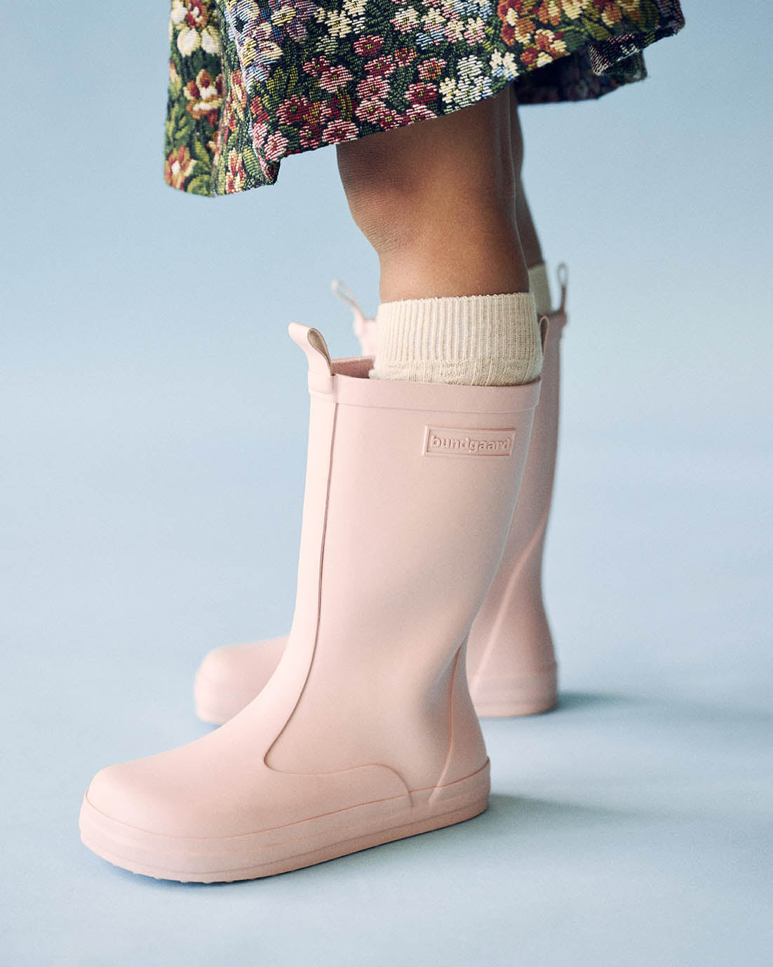På regnfulde og våde dage er gummistøvler et must-have. Mange børn synes, det er sjovt at lege i regnvejr - og hvis bare de er pakket godt ind fra top til tå, skal vejret ikke sætte en stopper for leg og bevægelse. Hos Bundgaard finder du et stort udvalg af gummistøvler til børn – gummistøvler med højt eller lavt skaft, med eller uden foer og i flotte farver og designs. Alle gummistøvlerne produceres i naturgummi, hvilket gør dem bløde, fleksible og behagelige for børnene at have på. Med gode og vandtætte gummistøvler bliver en pjasketur endnu sjovere for både børn og voksne. I et par gummistøvler skal der være plads til både leg og bevægelse. Det er med andre ord vigtigt at finde et par gummistøvler, som sidder behageligt på foden, så barnet kan løbe, gå, klatre rundt og lege uden problemer. Gummistøvler fra Bundgaard finder du helt ned til størrelse 20 og opefter. Naturgummimaterialet i alle vores støvler gør dem bløde og fleksible, og er derfor dejlige for barnet at have på uanset om dagen byder på gåture, hoppen i vandpytter eller noget helt andet. Derudover findes der gummistøvler til forskellige årstider, for køb af gummistøvler afhænger også af, hvornår støvlen skal bruges. Til de koldere måneder med regn anbefales gummistøvler med foer, idet der kan trænge vand igennem selv de bedste vinterstøvler, og her er en foret gummistøvle en såkaldt termostøvle, et godt alternativ til at holde de små fødder både tørre og varme dagen lang.