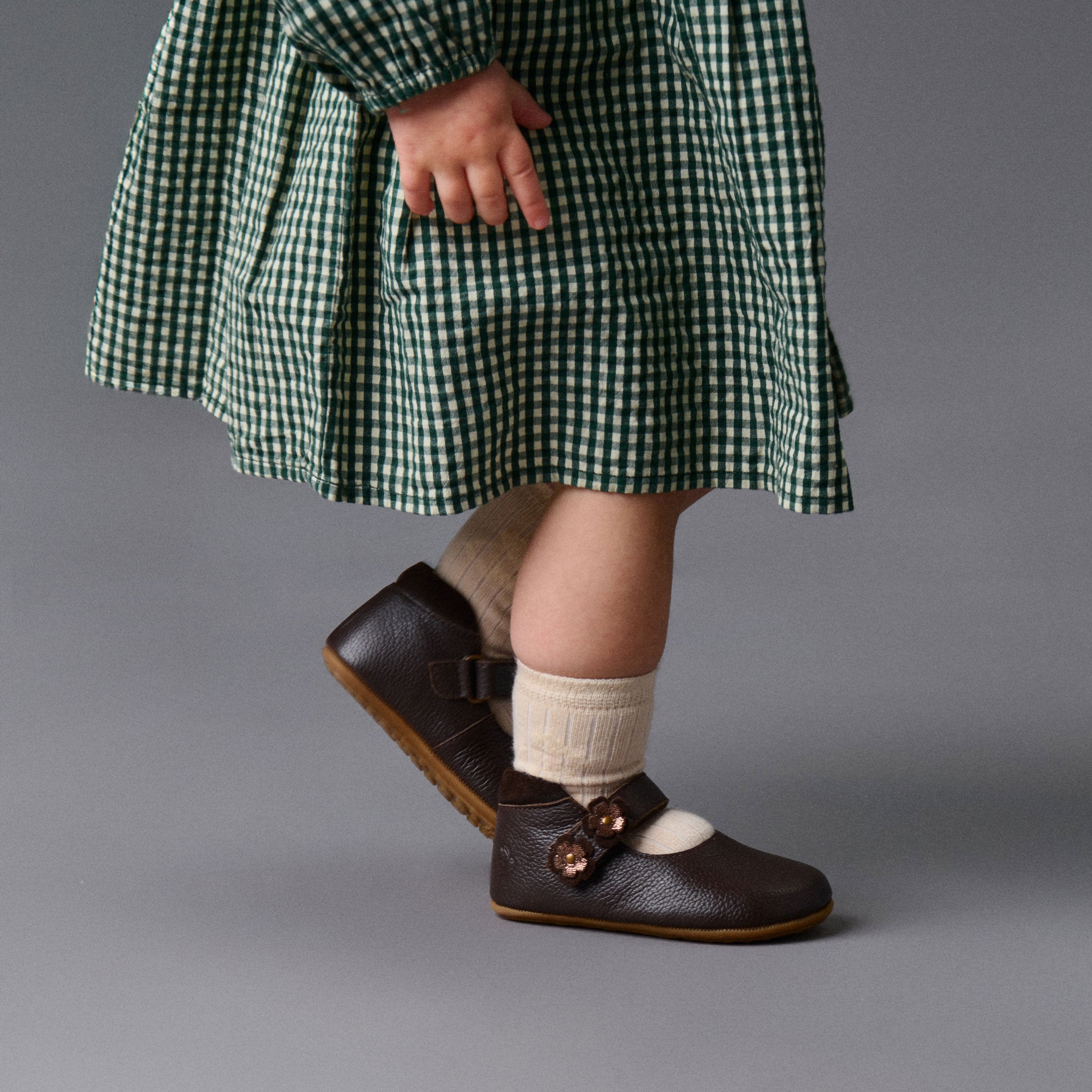 Aya er en sød hjemmesko i et blødt Bundgaard-design med fine blomsterdetaljer og plads til små fødder i bevægelse
