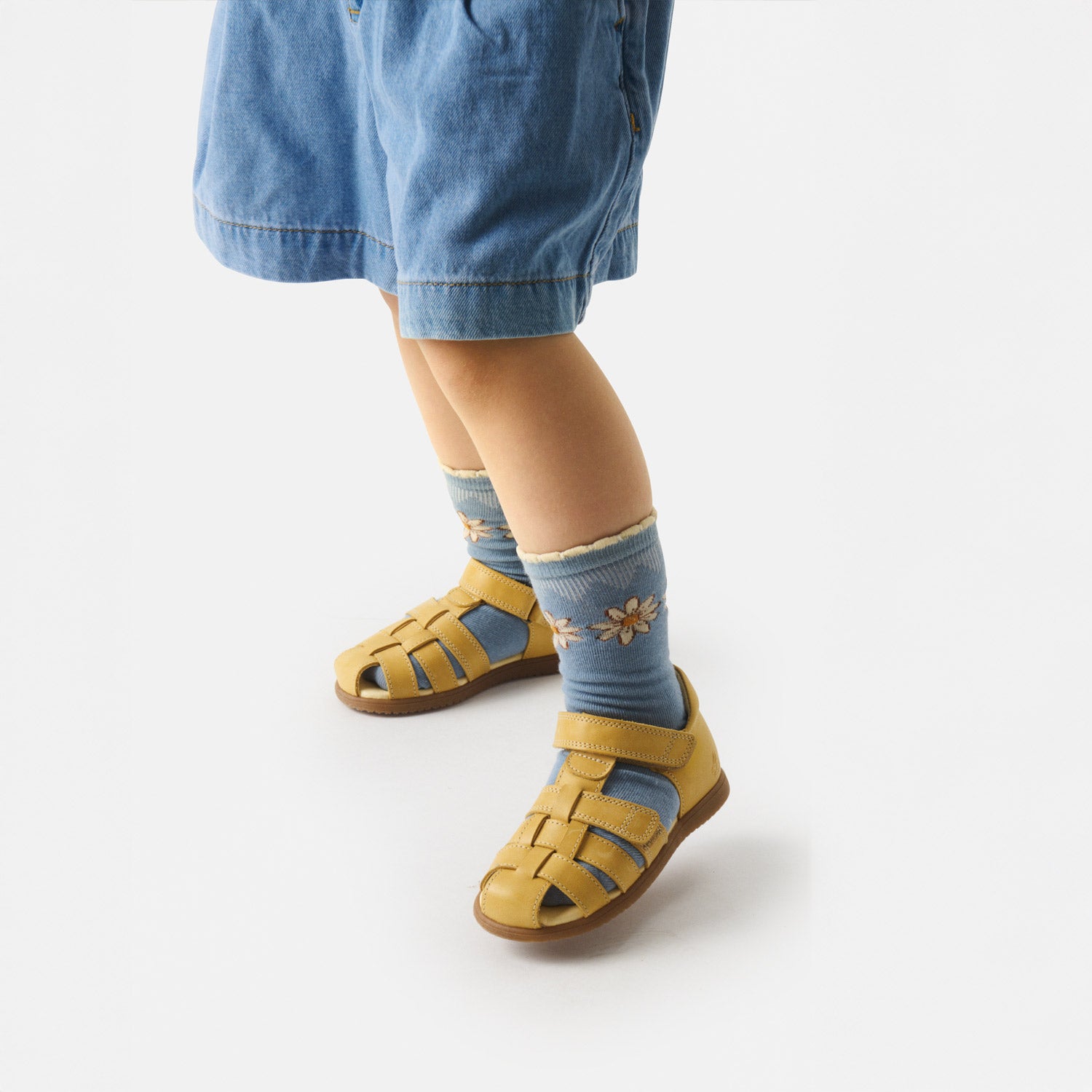 Sandalen har en lukket tå, som beskytter de små tæer. Samtidig er hælkappen fast og stabil, hvilket giver den nødvendige støtte til foden og bidrager til en sund, stabil gang.
