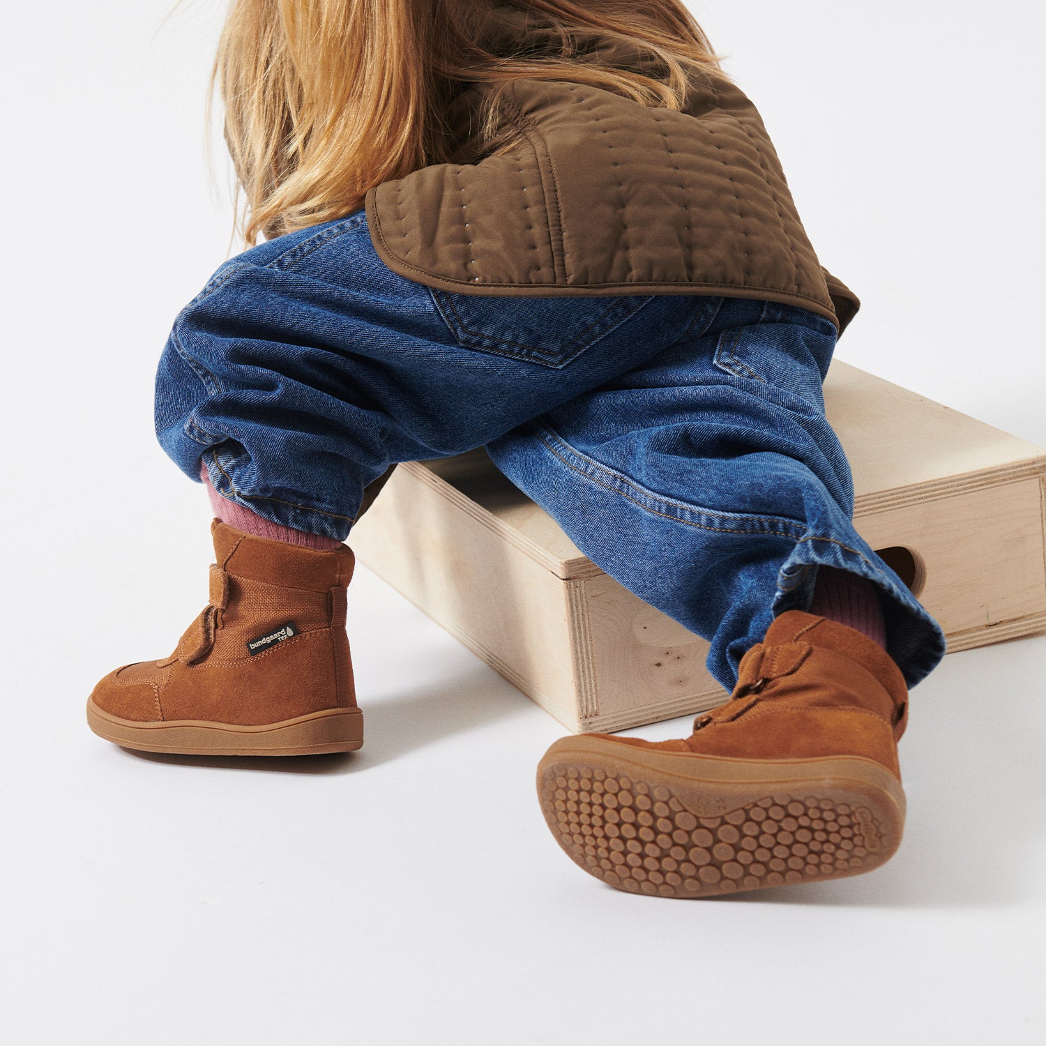 Bobbie er en klassisk vinterstøvle med et sporty udtryk, der kombinerer tekstil med bløde, bølgende detaljer i ruskind. Denne støvle er skræddersyet til børn med brede fødder og er ideel til de små, der kan gå og har opnået fuld balance.