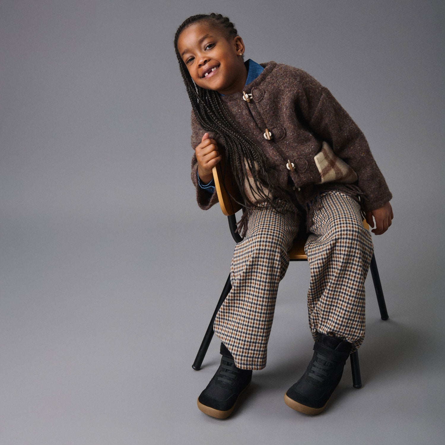 Brooklyn er en klassisk vinterstøvle med et sporty udtryk, skabt i tekstil med bløde, kurvede detaljer i ruskind. Den rummelige pasform med ekstra god plads i forfoden gør den ideel til børn, der trives med fri bevægelighed og naturlig komfort – uanset om de er i børnehave eller skole.