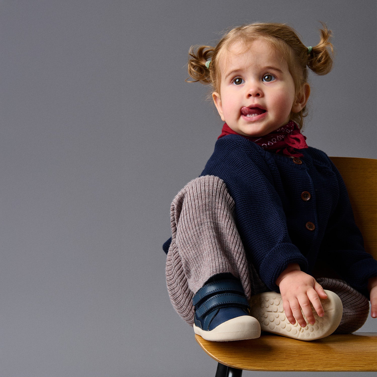 Mio er en let og blød begyndersko med et sporty udtryk, designet til de første skridt. Den har samme gennemprøvede pasform som vores ikoniske Petit, med plads til tæernes naturlige bevægelse og støtte omkring anklen.