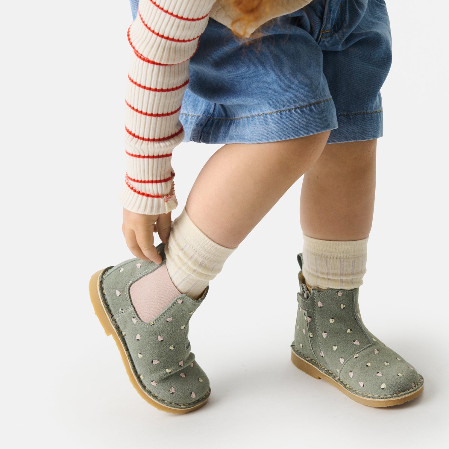 Støvlens design byder på en god, stabil hælkappe, som giver barnet den rette ankelstøtte, der er vigtig for at sikre komfort og stabilitet gennem hele dagen. Den faste tåkappe beskytter de små tæer mod stød, hvilket gør støvlen velegnet til både leg på legepladsen og til gåture på forskellige underlag.